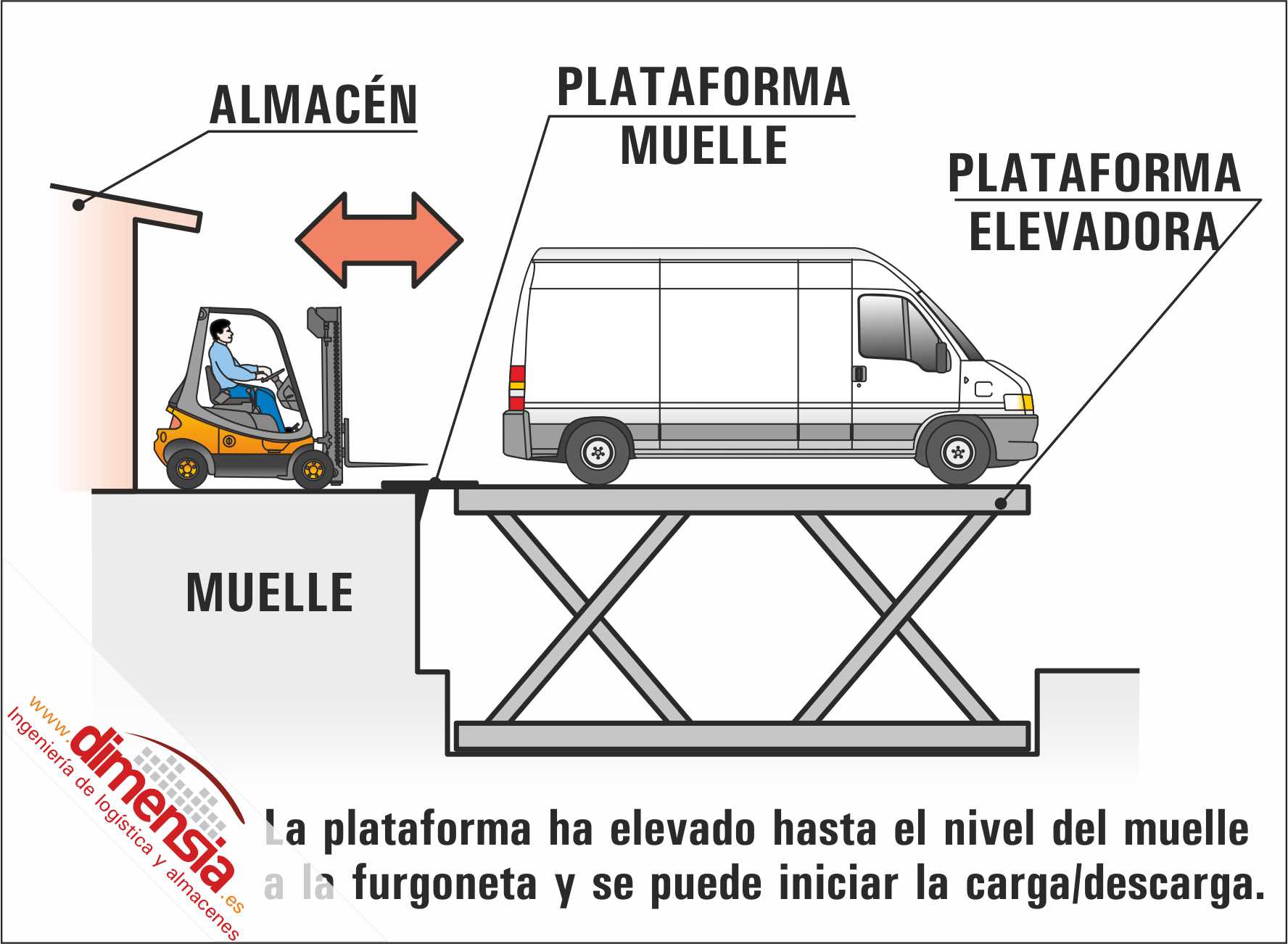 La plataforma o rampa niveladora es el nexo entre el propio muelle de carga y descarga y el vehículo permitiendo, gracias a su diseño, el adaptarse a la posible diferencia de altura entre el muelle y la caja del camión.
